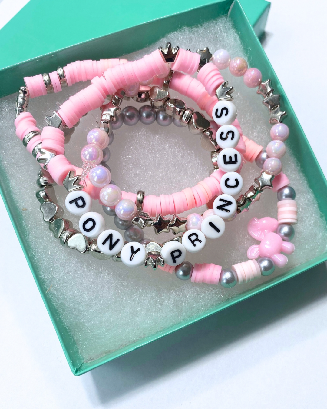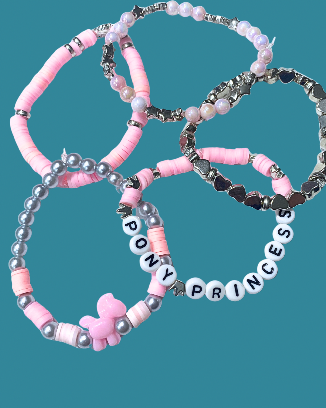 Arenas Tour Bracelet Stack Pony Princess Pink/SilverStack of 5 stretchy bracelets, as pictured