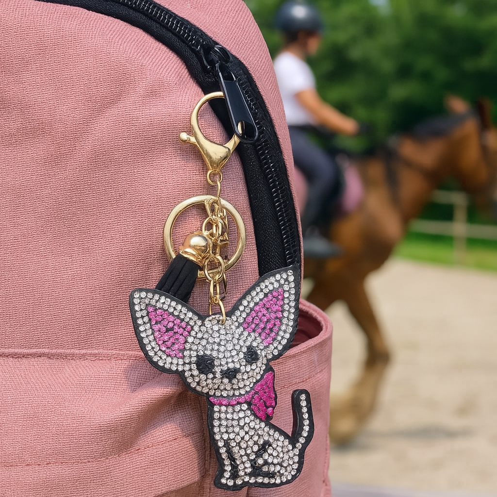 KeyChain / Bag Charm: Chihuahua ~ Sparkle ~ White