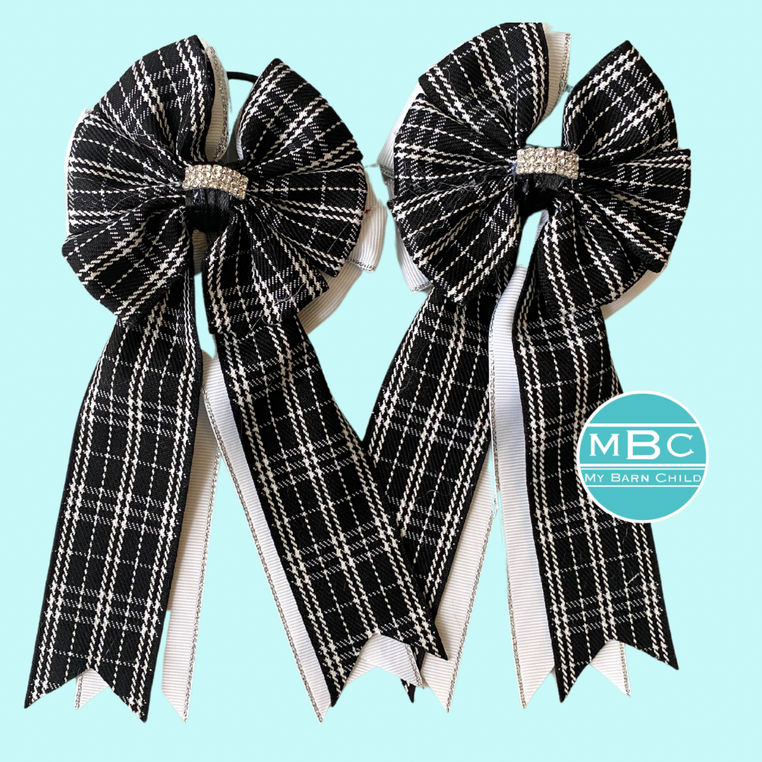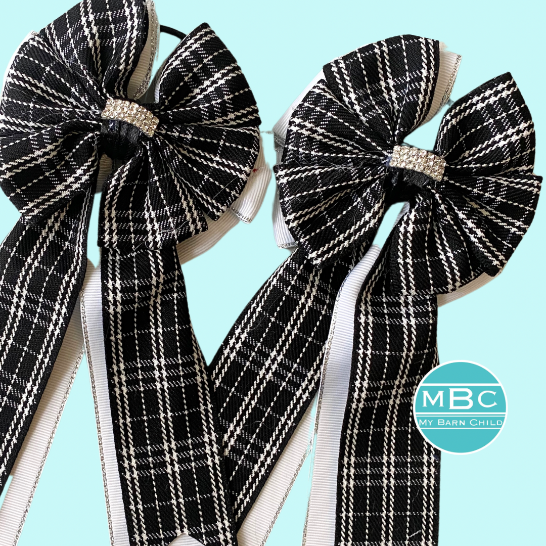 Show Bows: Black Plaid on White
